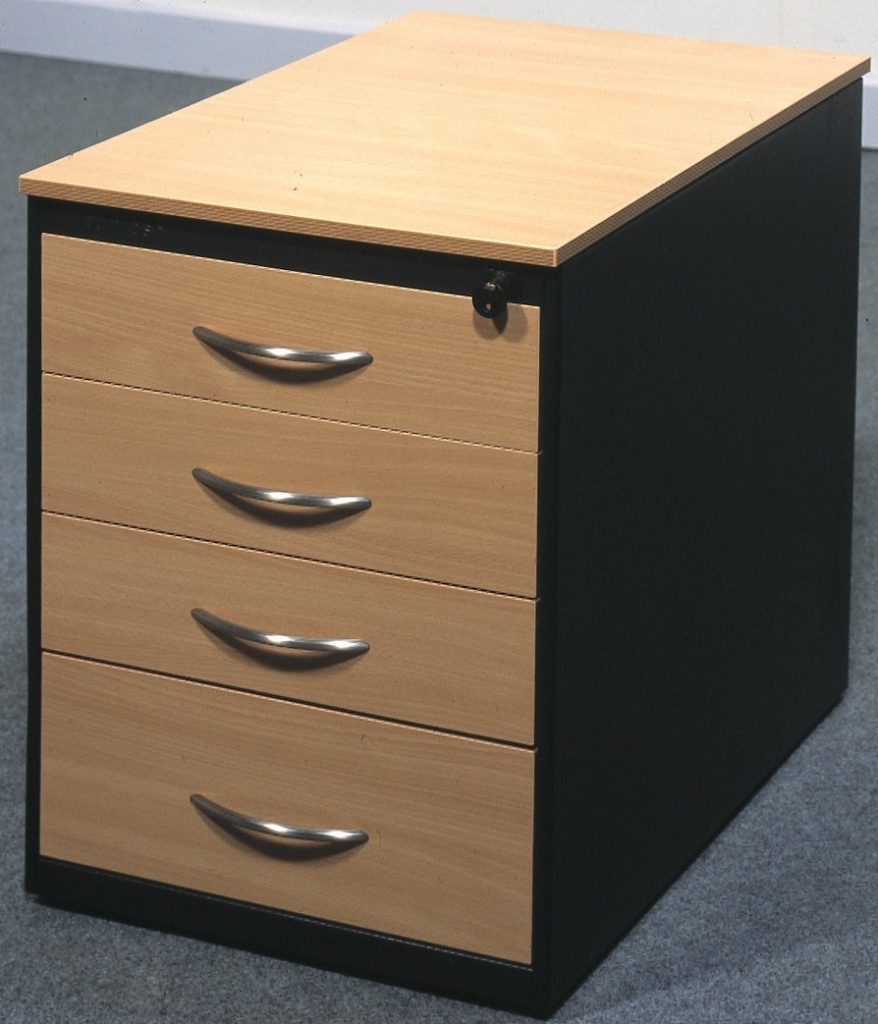 Caisson roulant à 3 tiroirs tout bois (Fermeture centrale)